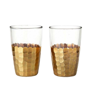 זוג כוסות זכוכית עם תחתית טקסטורה זהב